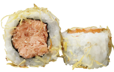 Relleno de pasta de Salmón. Cubierto con crocante de BATATA.