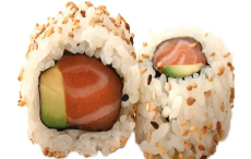 🍣 Salmón 🥑 Palta. Espolvoreado con sésamo tostado blanco.